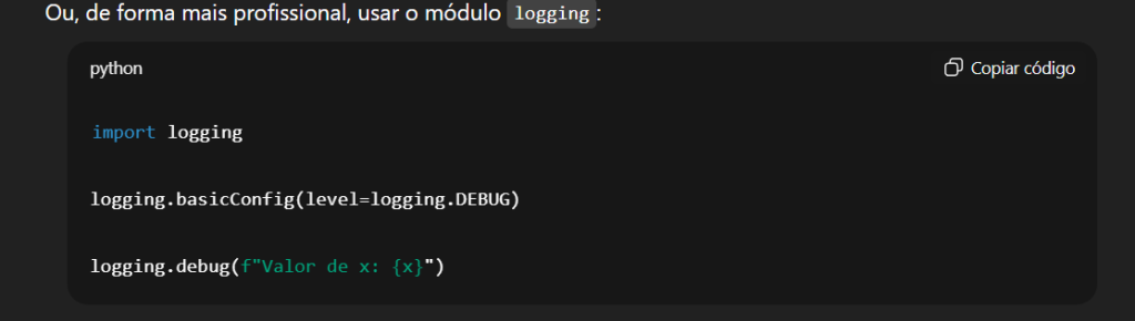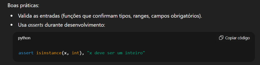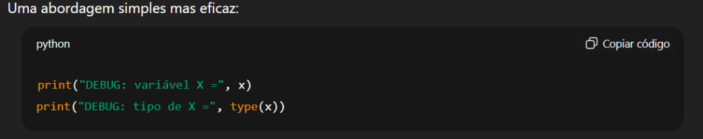 A partir daí, poderá pedir orientações técnicas, sugestões de arquitetura, boas práticas e soluções para problemas concretos de código.